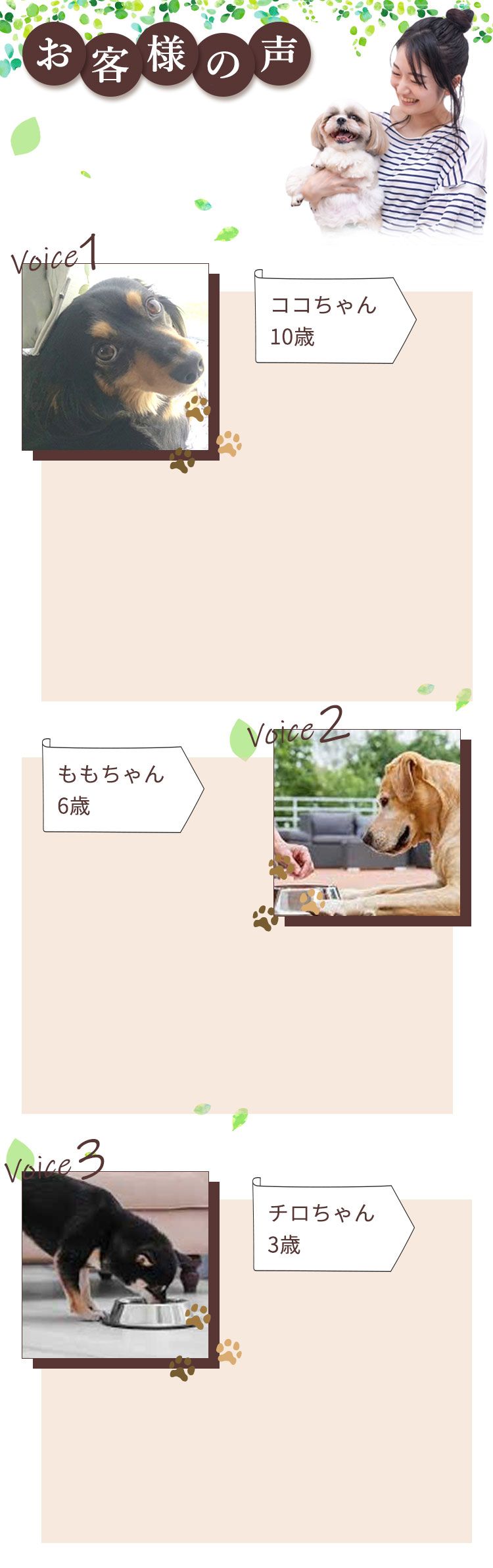 他のドッグフードと違って香料やエキスなどの化学調味料も入っていないので、毛の艶が良くなりました!